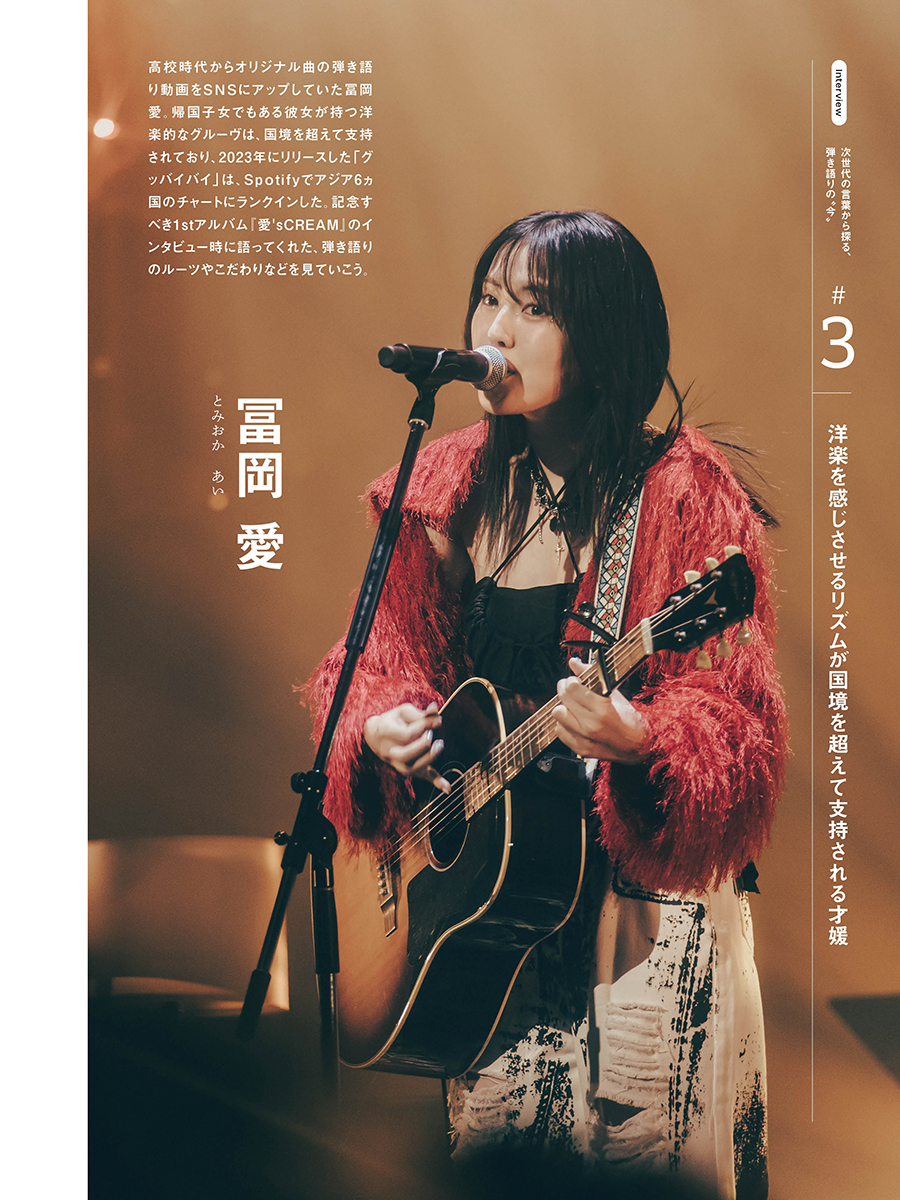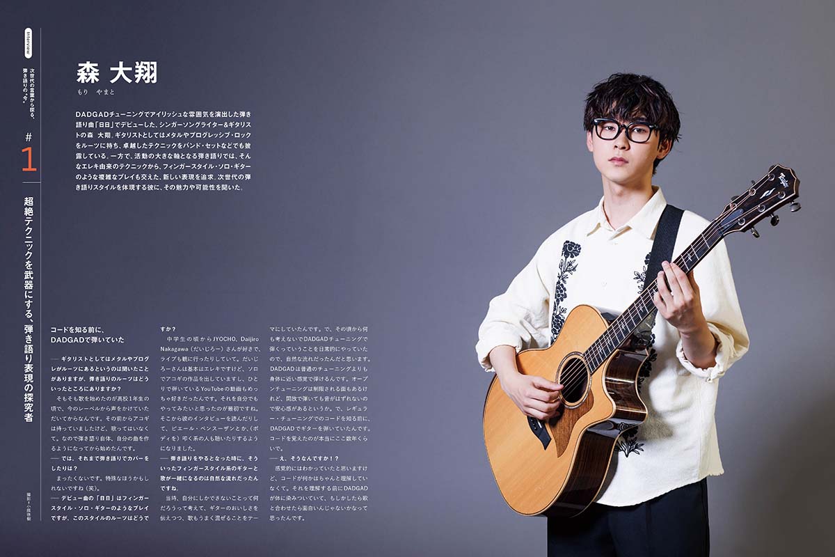 次世代を担うアーティストへのインタビュー、ドクターキャピタルによる最新J-POPの弾き語りアレンジ譜面、Michael Kanekoによる弾き語り向きアコギの試奏レビューなど、タイトルのとおり“アコギ弾き語り”をテーマにしたさまざまなコンテンツを収録している。