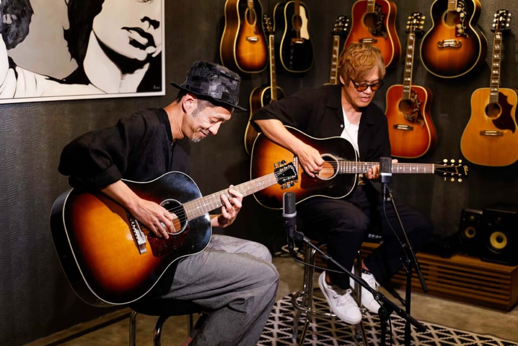 若い頃に抱いていたギブソンへの憧れや、それぞれが感じるJ-45の魅力など、マニアックな視点でトークが進められる。試奏パートや貴重なふたりのアコースティック・セッションは必見だ。