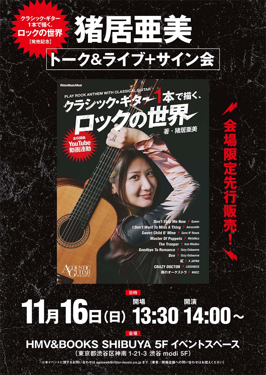 - 【11/16】猪居亜美が『クラシック・ギター1本で描く、ロックの世界』発売記念トーク&ライブ+サイン会をHMV渋谷にて開催!