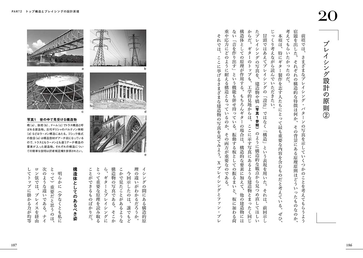 各パーツが持つ機能や構造、ブレイシングの設計、またトップの厚みやサステインのメカニズムにいたるまで、氏による長年の研究に基づく分析を408ページにわたって紹介する。そのほか、“トップ材にまつわる不思議な話”、“とんでもない失敗談”などのコラムも掲載予定だ。