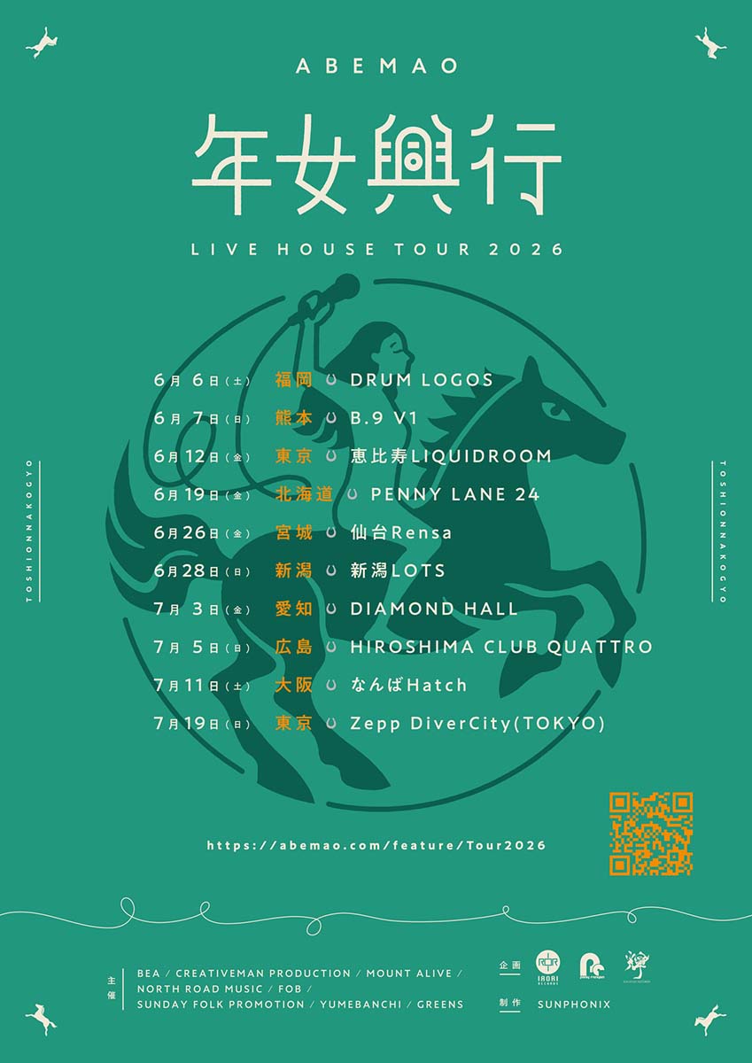 2026年に“年女”となった午年生まれの阿部真央が全国を駆け巡る本ツアーにて、どのようなアコースティック・ギターによるプレイが見られるのか、注目したい!
