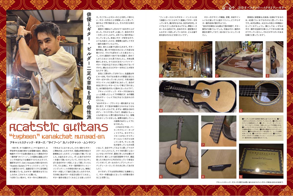 欧米/日本製の手工ギターの価格が高騰する中、アジア製のクオリティもぐんぐん向上している。その中でもデザインなど楽器の完成度を鑑みて、注目すべき国がタイのギター・ビルダーたちである。個人製作家でありながら、価格を抑えセンスの良いギターを作るFonzo,Inchi,Bocusto,Acatstic,Hippoという5つのブランドをタイ・バンコクで現地取材してきた。