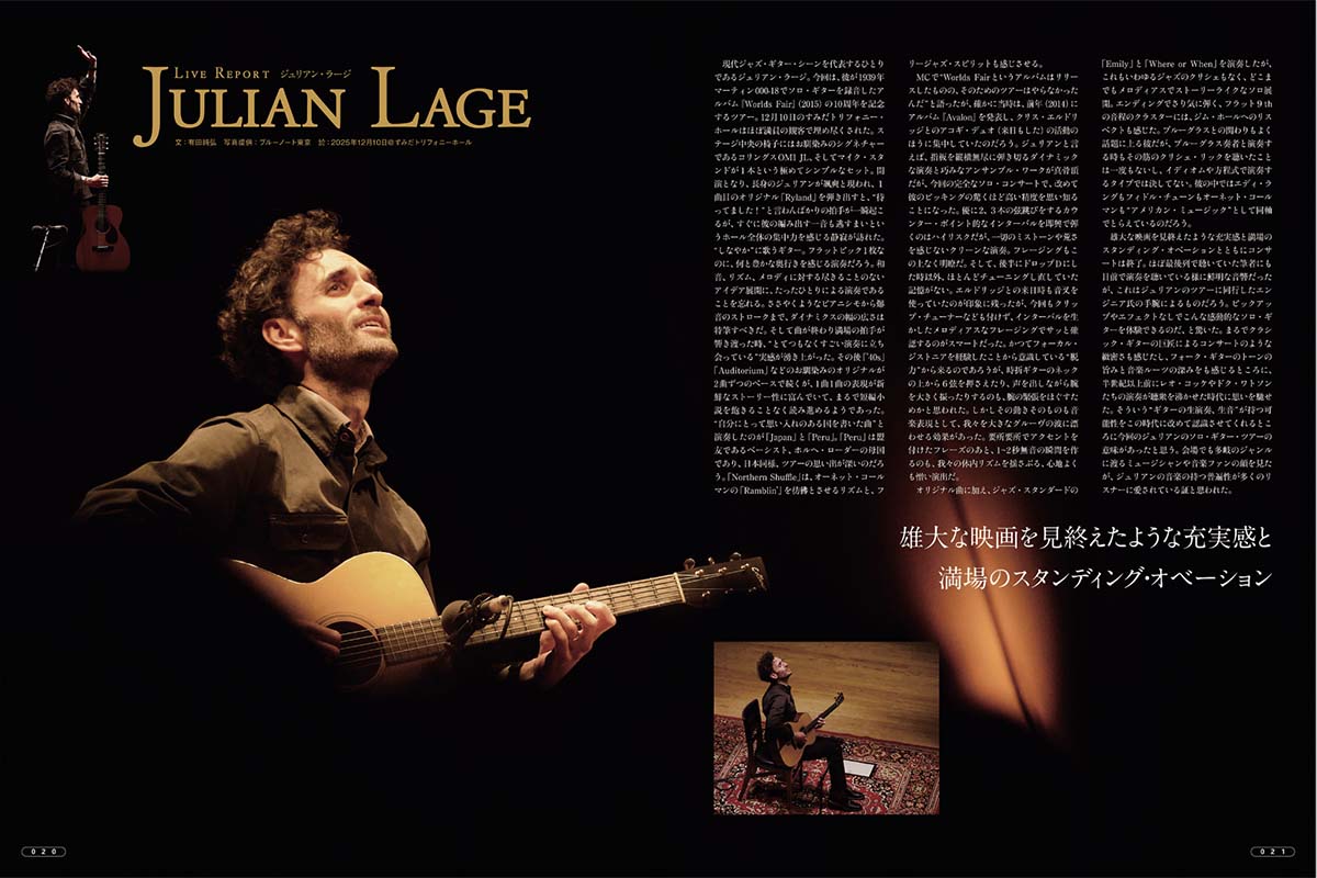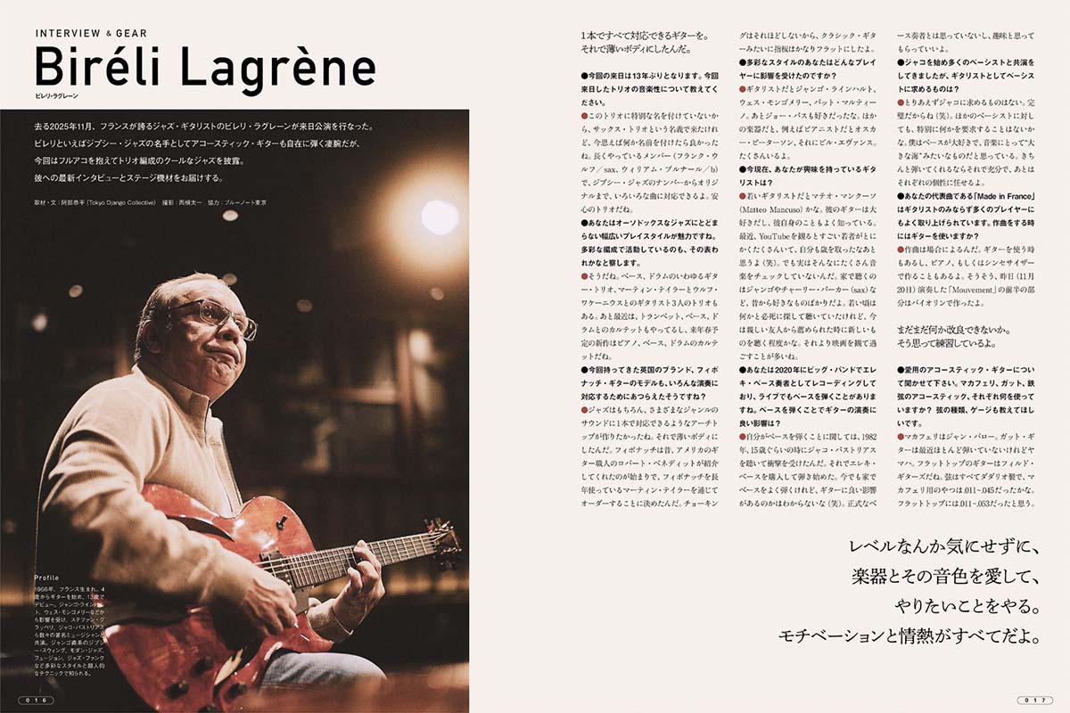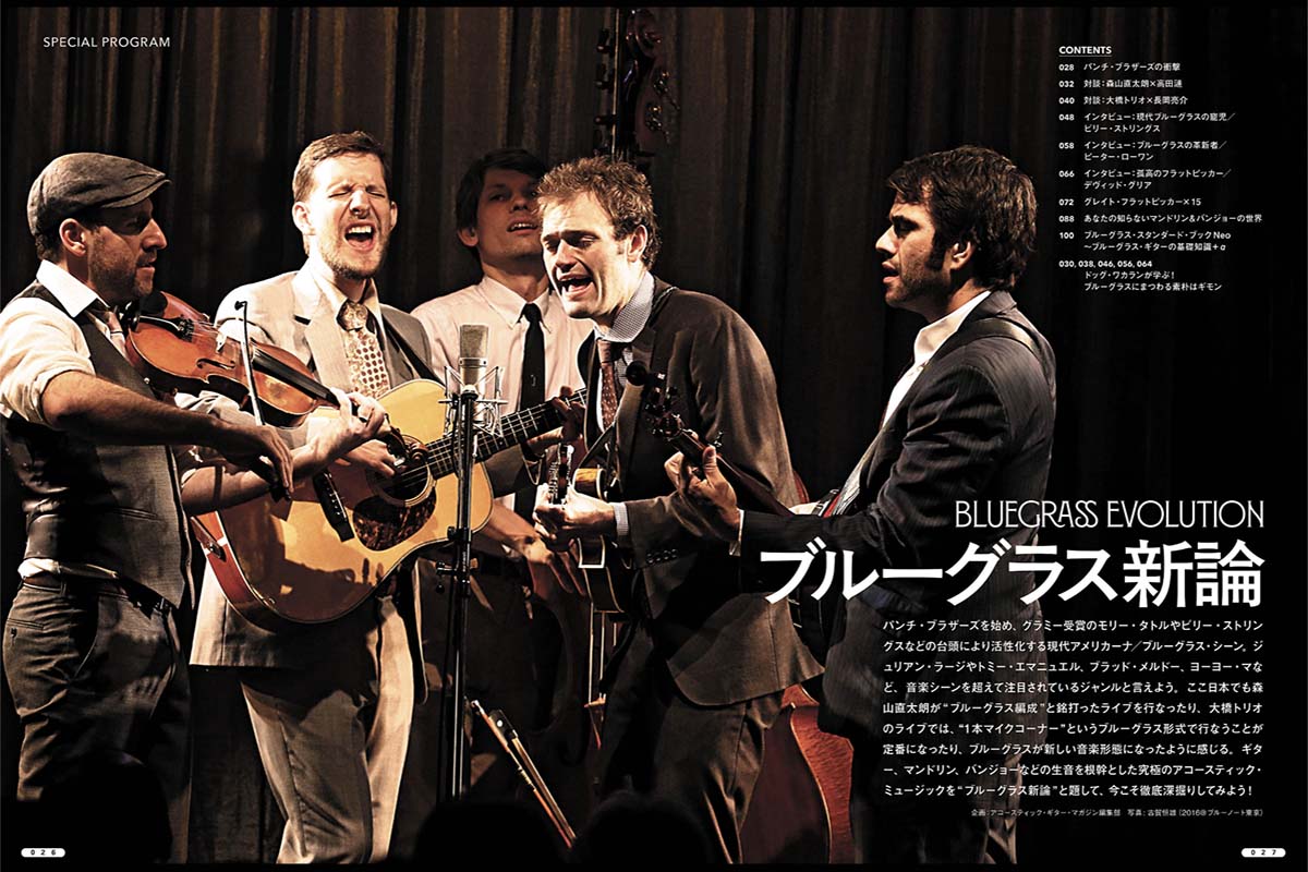 表紙&特集は『ブルーグラス新論』。現代アメリカーナ/ブルーグラス・シーンにフォーカスし、パンチ・ブラザーズ、ビリー・ストリングス、ピーター・ローワンらの魅力を深掘り。さらに、国内シーンで活躍する森山直太朗×高田漣、大橋トリオ×長岡亮介の特別対談も実現。“最新ドレッドノート5番勝負”では齊藤ジョニーがブルーグラスにぴったりのドレッドノートをレビューする。特別歌本小冊子として『ブルーグラス・ギター講義録』も付録。