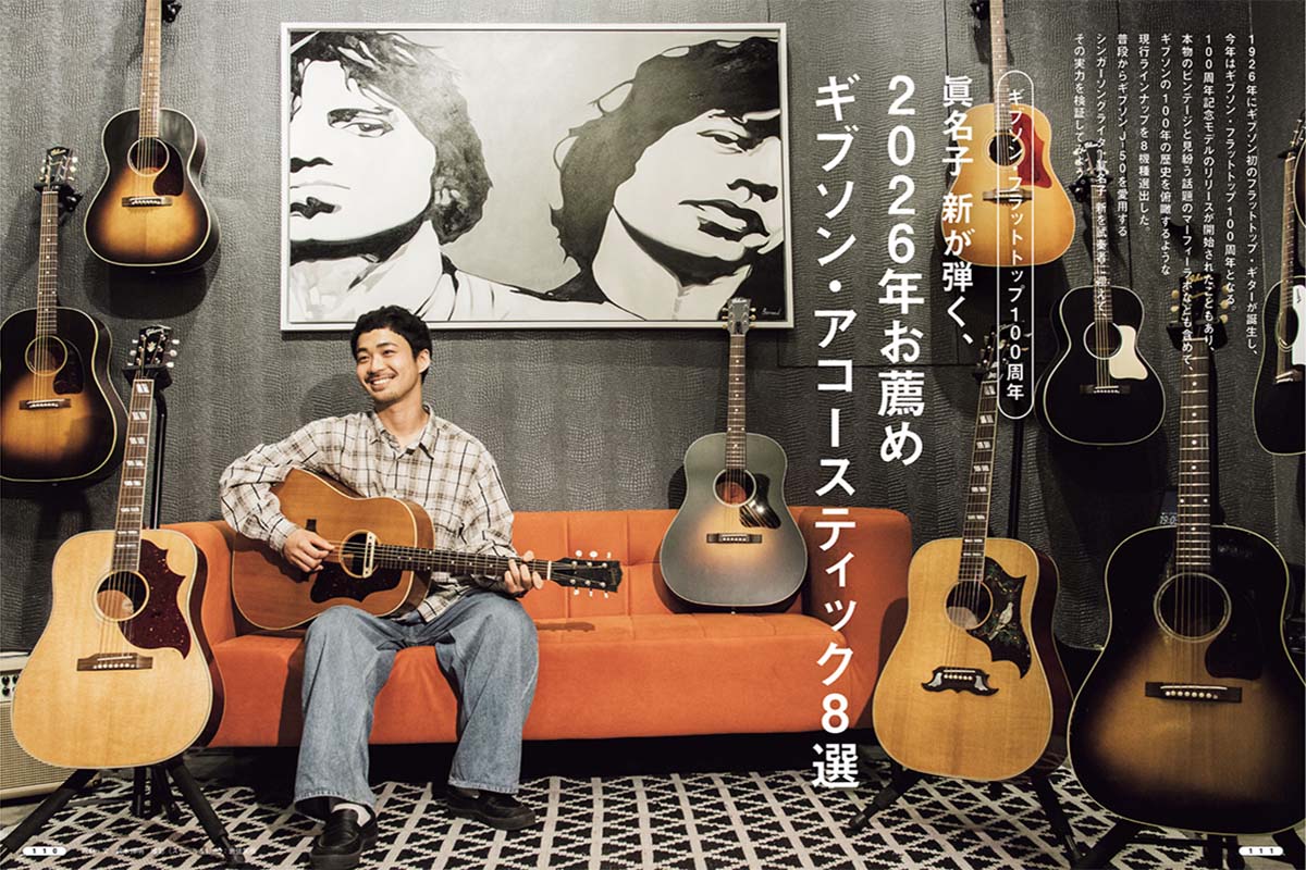 表紙&特集は『やっぱり、ギブソン』。1926年にギブソン初のフラットトップ・ギターL-0、L-1が誕生し、今年で100周年。そこで国籍や時代を超えた現代の音楽シーンに至る名演・名曲には欠かせないギブソン・アコースティック・ギターの100年を総括しよう。特集内では伝説器の紹介や眞名子 新が弾く“2026年お薦めギブソン・アコースティック8選”、外園一馬による“アコギ用アンプ最前線”も掲載。また特別歌本小冊子『永遠のギブソン・サウンド名曲選』も付録。