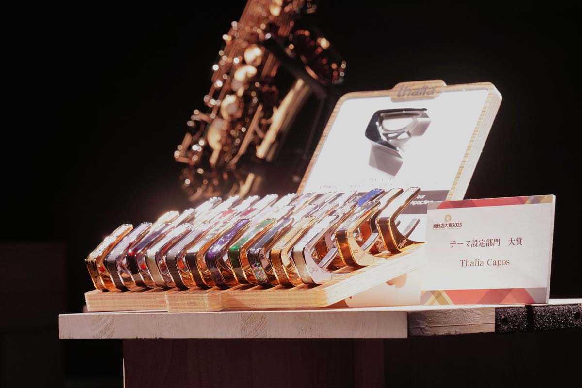 また2025年度テーマとして設定された“今、話題のこの商品”部門では、タリア・カポ(Thalia Capos)が大賞に選ばれた。スマートなルックス、抜群のチューニングの安定性が評判を呼び、カポタストとしては高価ながら、楽器店員から多くのレコメンドを集めた。
