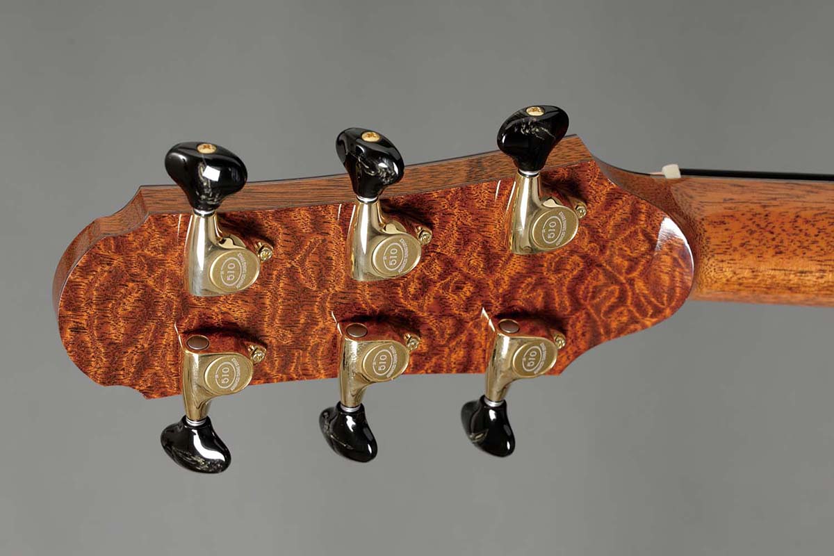 ひとりのルシアーが企画〜製作のすべてを担うプロジェクトから生まれたオリジナルDシェイプ・モデルで、伊藤隆司氏が担当。王道とも言える材と独特のフォルムが相まったレンジの広い豊かなトーン、ディープな胴厚による低音のリッチさは本器ならでは。ヘッド裏の杢目や大理石のように黒光りするペグなどがゴージャスさを演出する。オールマイティに使えるギターだ。