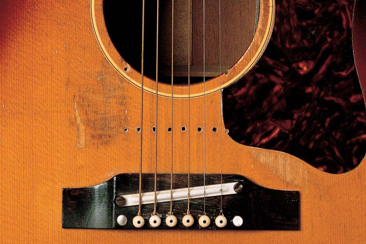 ジョージのJ-160Eは、65年にピックアップの位置を2度動かしている。ブリッジとサウンドホールの間に、移動した際に開けた8つの穴を今でも確認できる。サウンドホールの後方にも取り付けた跡があるが、結局はオリジナルの場所に戻された。リア側に移動するとピックアップと弦の距離が離れ、ポールピースの位置もずれるため、出力が小さくなることが問題だったのかもしれない。