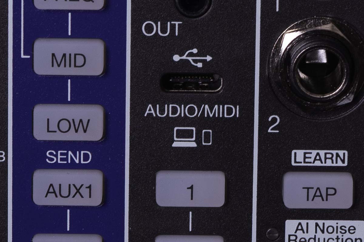 - コントロール:マスター・ボリューム、モニター・ボリューム、サブアウト・ボリューム、シーンA〜D、マスター/サブ・ミックス切り替え、メニュー、再生/停止、録音、バウンス、【共通】チャンネル・エンコーダー、ミュート 【Ch.1〜4】48Vファンタム電源 【Ch.1〜2】Hi-Z 【Ch.5〜8】PADスイッチ 【Ch.5〜6】MONO 【Ch.7〜8】USB 【エンコーダー・メニュー】ハイ、フリークエンシー、ミッド、ロー、AUX1、AUX2、EFX、サブ・ミックス、パン、レベル 【SOUND PAD】1〜4、SOUND PADノブ 【エフェクト】セレクト(AIノイズ・リダクション、ホール、ルーム、スプリング、ディレイ、エコー)、EFXリターン