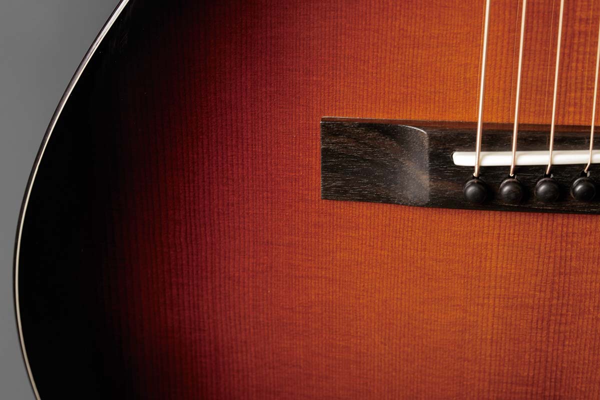 E1シリーズならではのオール単板でフルグロス仕様というコスパの高さを誇るモデル。抱えやすく演奏性の高い00サイズで、サペリ材による軽快かつ豊かなミッド・レンジ、1、2弦の艶やかさが特徴だ。フィッシュマン製ピックアップの搭載により、ステージでも即戦力。美しいサンバーストのグラデーションがブルージィで渋い雰囲気を作り出す。