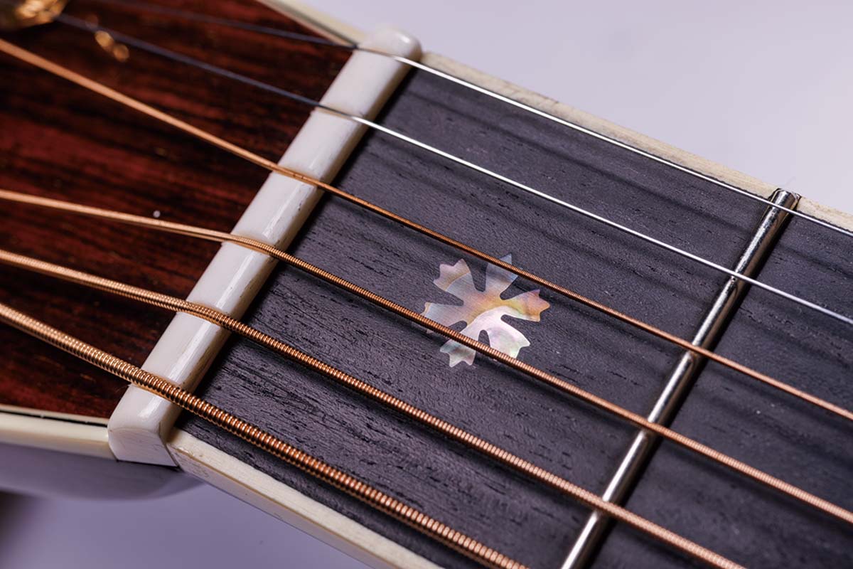 齊藤 ボディやネックにしっかりとした重量感があって、従来のイメージどおりのオールド・マーティンを弾いているような感触です。音色も60年代のブルーグラスの音源で聴けるような硬めのトーンですね。音に芯があって、音の立ち上がりも非常に速い。ローがすっきりとしていて、全体的に締まった音色です。そして、この凜としたトーンの美しさ。これは代えがたいものがありますね。古き良きブルーグラスを弾くにはうってつけだと思います。このギターでドク・ワトソンのようなプレイをすると気持ちいいでしょうね。グリップは肉厚ですけど、しっくりとくる握り心地なんですよ。このあたりの絶妙な作りが素晴らしいです。