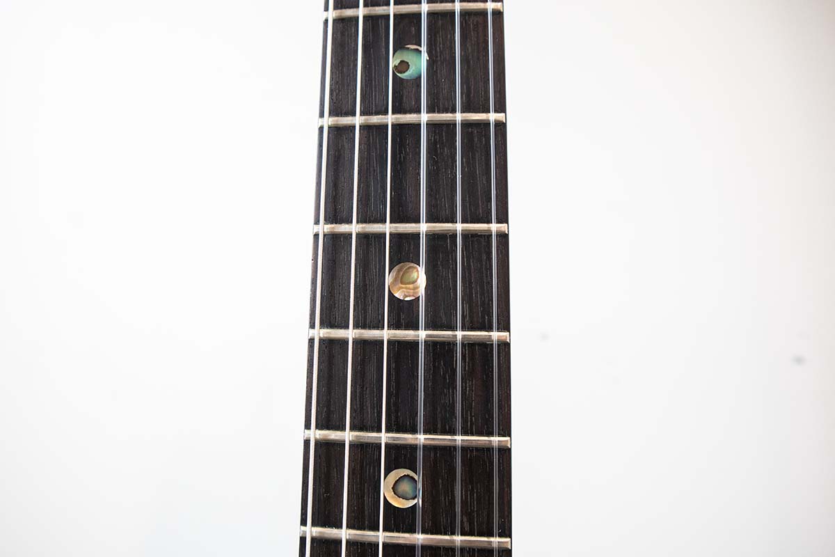 玉置は作曲の際にも本器を使っており、“ハイ・フレットで細かく刻むアルペジオのフレーズを弾くことがあるんですけど、その時の音が気持ち良いんです。このギターで曲を作る時はそういうフレーズが出てくることが多い気がしますね”と話してくれた。