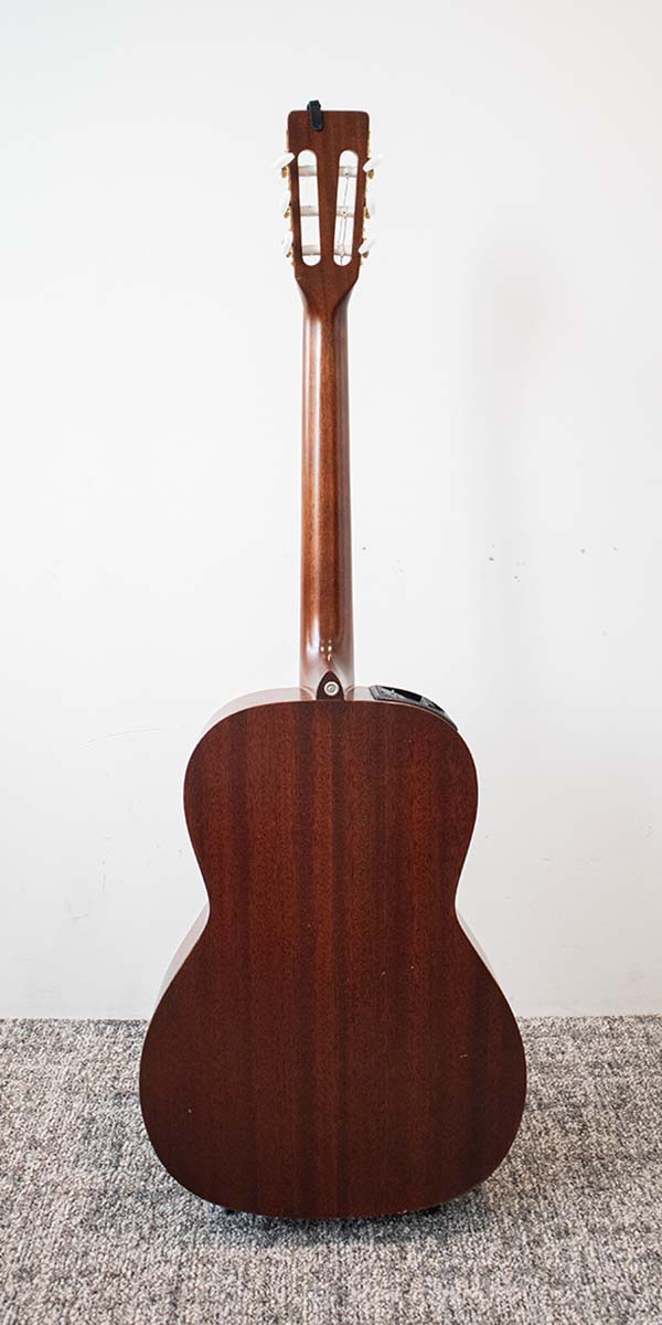 材構成はトップにシダー、サイド&バックとネックにマホガニー、指板とブリッジにローズウッド。また出力は、タカミネのGRAPH-EX Pre Ampとオバナ・マイクロフォンのOBA-G5にて行なっている。