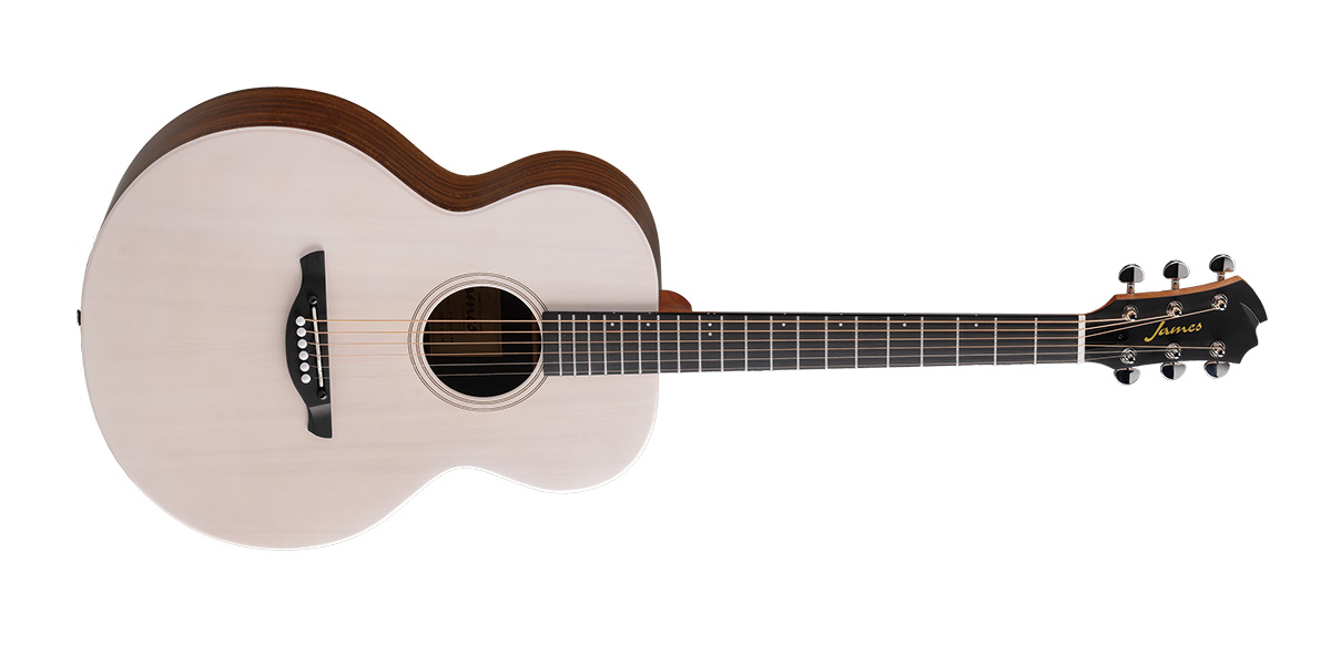 2002年に誕生し、オール単板仕様の本格派から初心者向けの安価なモデルまで、幅広いラインナップを展開する島村楽器のオリジナル・ブランド、James(ジェームス)。本器は “Evergreen Project”の一貫として、環境に配慮した素材を用いて作られているのが大きな特徴だ。スモール・ボディのサイド&バックには、HPLが使われ、指板&ブリッジもテック・ブラックと呼ばれる人工材で作られている。ただトップはシトカ・スプルースの単板で、豊かな生鳴りを生む。演奏性の高いネックはカーボン・ロッドで補強され、ボディとともに湿気にも強い。弦高調整可能なサドルもポイント。